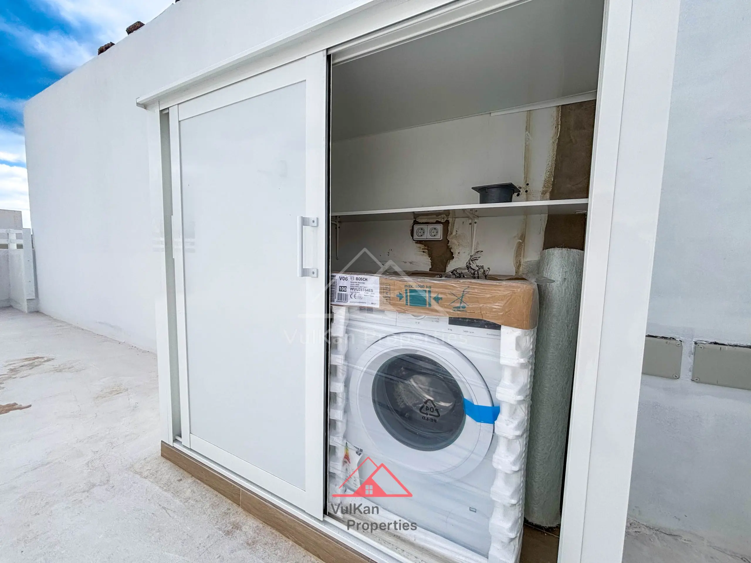 The top floor is where this property truly stands out. It’s expansive rooftop terrace is a versatile space, perfect for enjoying the Lanzarote sun, hosting barbecues, or creating an outdoor lounge area. This level also includes an additional room and bathroom, which can be used as a guest suite, home office, or hobby room. Additionally, there is a dedicated laundry and storage area for extra convenience.