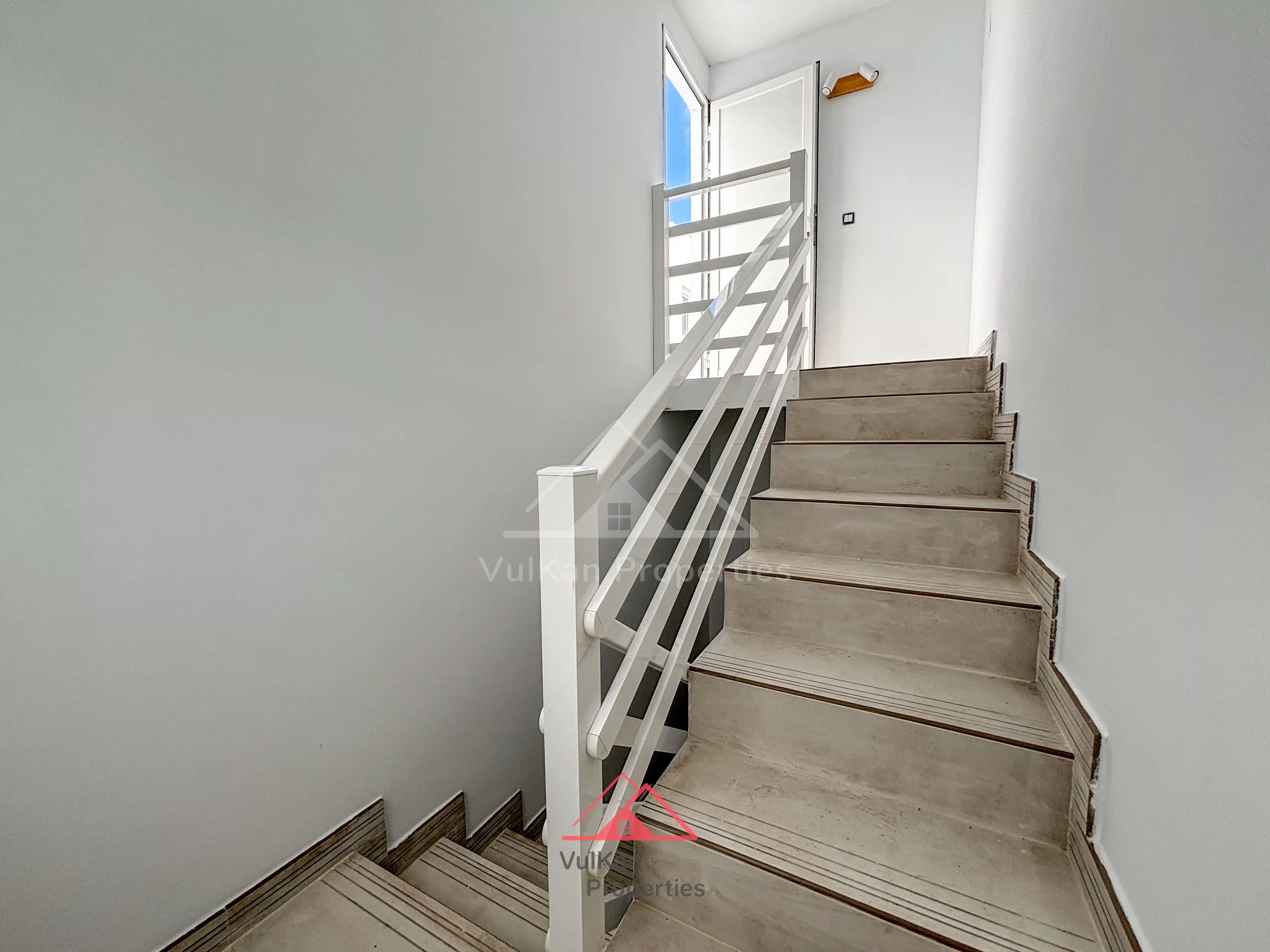 The first floor is the main living area, designed with an open-plan layout that seamlessly connects the living and dining spaces. Large windows ensure plenty of natural light, creating a bright and welcoming atmosphere. It boasts three well-proportioned bedrooms, ideal for a family or hosting guests. The fully equipped kitchen offers modern appliances and ample storage, while the stylish bathroom provides comfort and practicality.